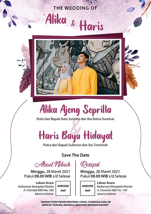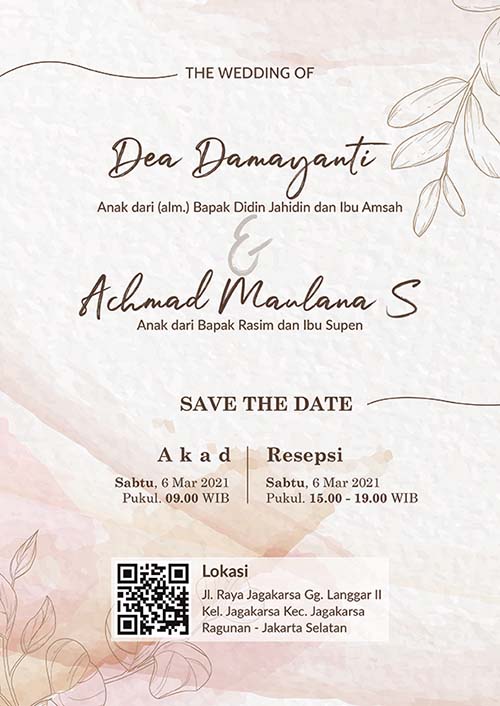 Batas maksimal revisi sampai H-1 hari acara ya dan undangan tidak bisa direvisi untuk acara lain. Misalnya awalnya pesan untuk acara resepsi, lalu di revisi untuk acara ngunduh mantu.
